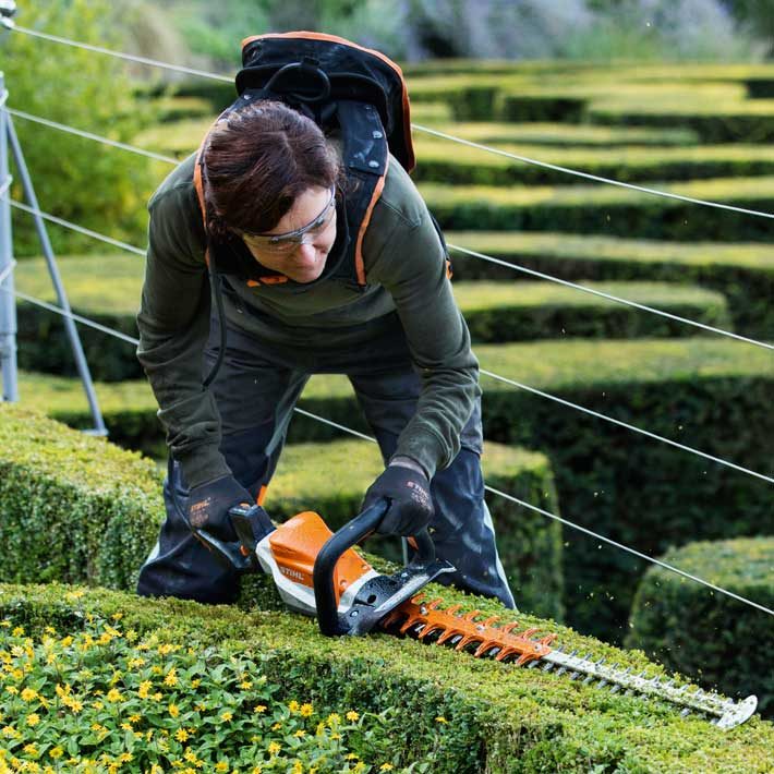 Zelo zmogljiv in robusten akumulatorski rezalnik za živo mejo za profesionalne uporabnike. Visoka hitrost nožev za natančne reze. Stalno število gibov tudi pri obremenitvi, vrtljivi multifunkcionalni ročaj s tristopenjsko nastavitvijo števila gibov. Obojestransko brušeni noži v izvedbi za trimanje, privita zaščita pred rezi in zaščita nožev. Dolžina reza 60 cm.